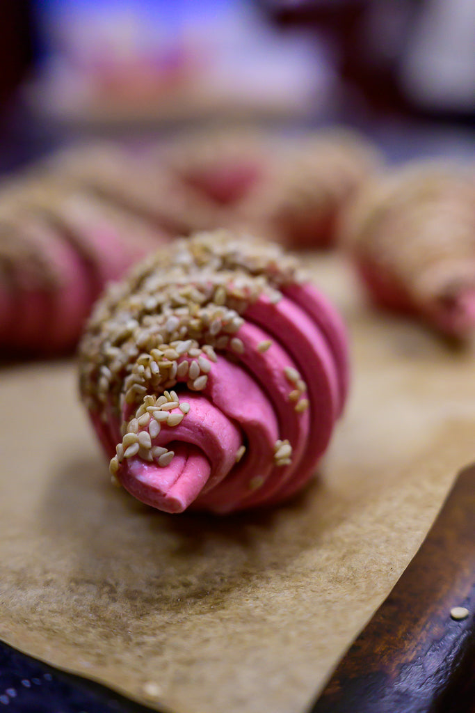 Cornetti salati con barbabietola e semi di sesamo