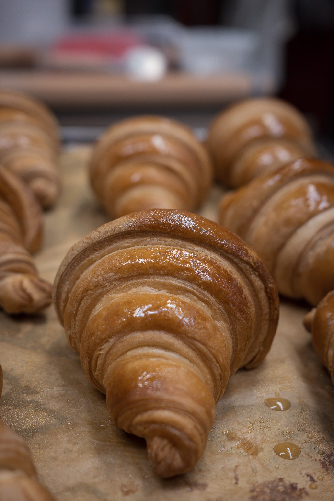 Evita di usare uova o latte per dorare la superficie del cornetto: potrebbero compromettere il corretto sviluppo del prodotto in cottura. Se desideri una finitura lucida, puoi utilizzare il nostro 'Zucchero lucidante' oppure spennellare il cornetto ancora caldo, appena sfornato, con uno sciroppo a base di acqua, zucchero e vaniglia (o scorze di agrumi o altro aroma a scelta).