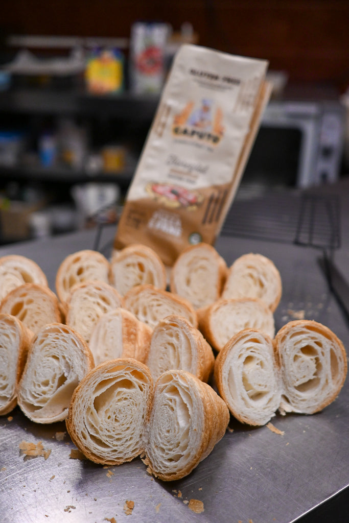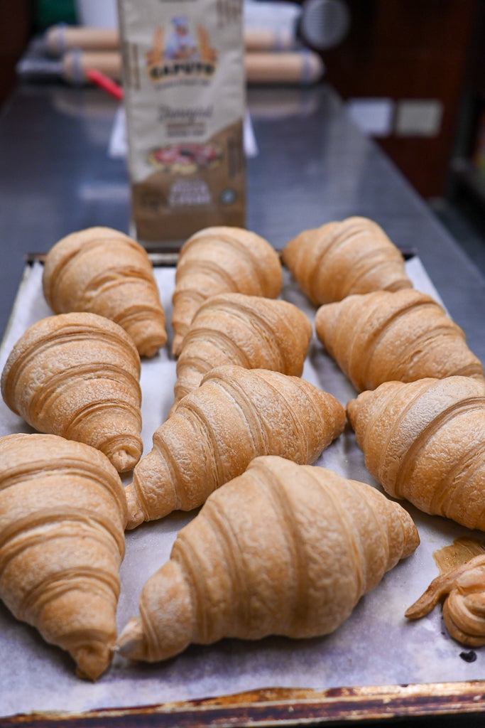 Lascia raffreddare completamente il cornetto prima di tagliarlo: in questo modo l’umidità residua si ridistribuirà all’interno del prodotto, permettendo all’alveolatura di risultare ben definita e visibile.