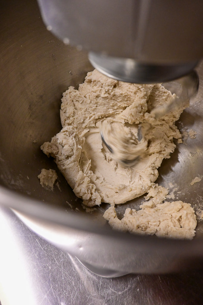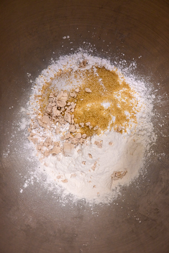 Place all the dry ingredients into the bowl of a stand mixer and start mixing at low speed, preferably using the paddle attachment.