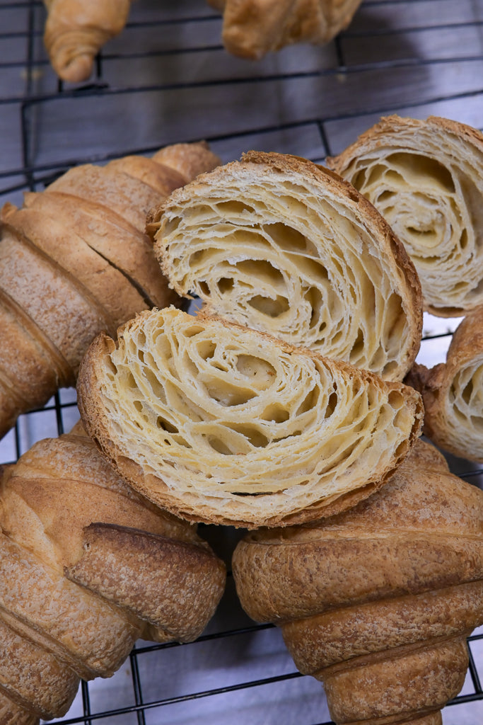 Allow the croissant to cool completely before slicing: this allows the residual moisture to redistribute within the product, ensuring a well-defined and visible crumb structure.