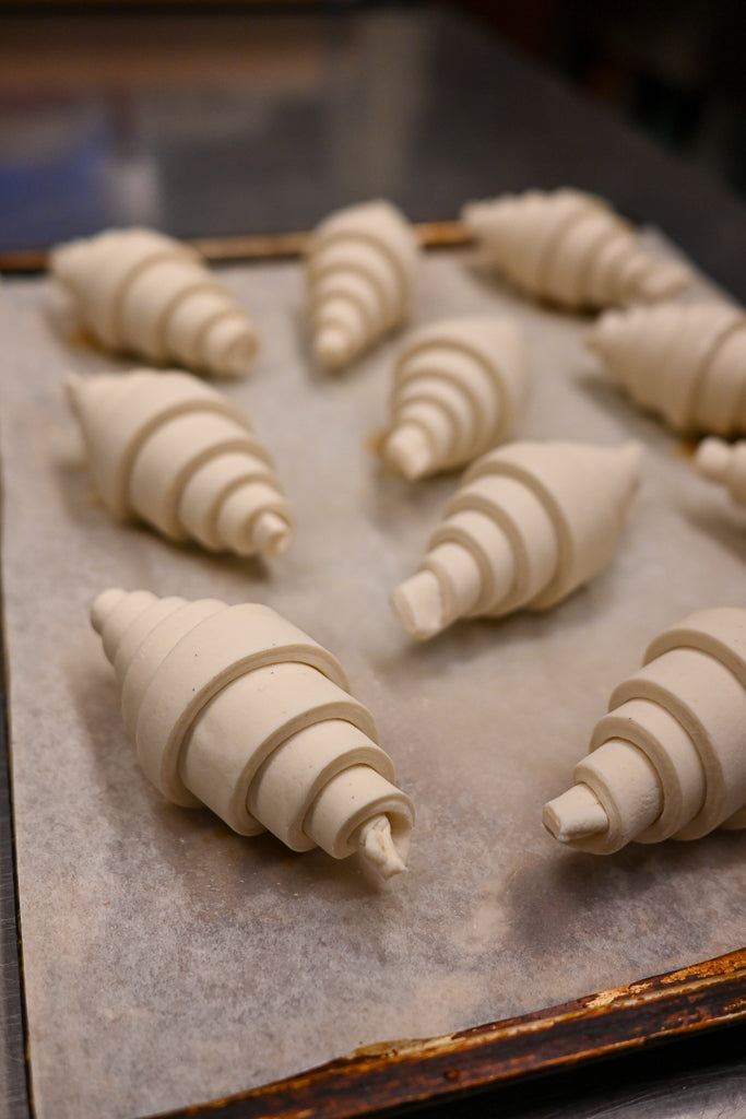 Let cool on a wire rack, and once cool, transfer to the freezer. Croissants can be stored at room temperature for about 48 hours, or up to 30 days at -18°C.