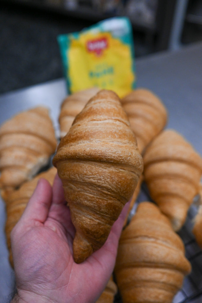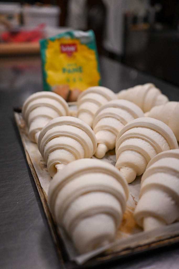 Leaves cool completely the croissant before cutting it: this way the residual moisture will be redistributed inside the product, allowing the alveoli to be well defined and visible.