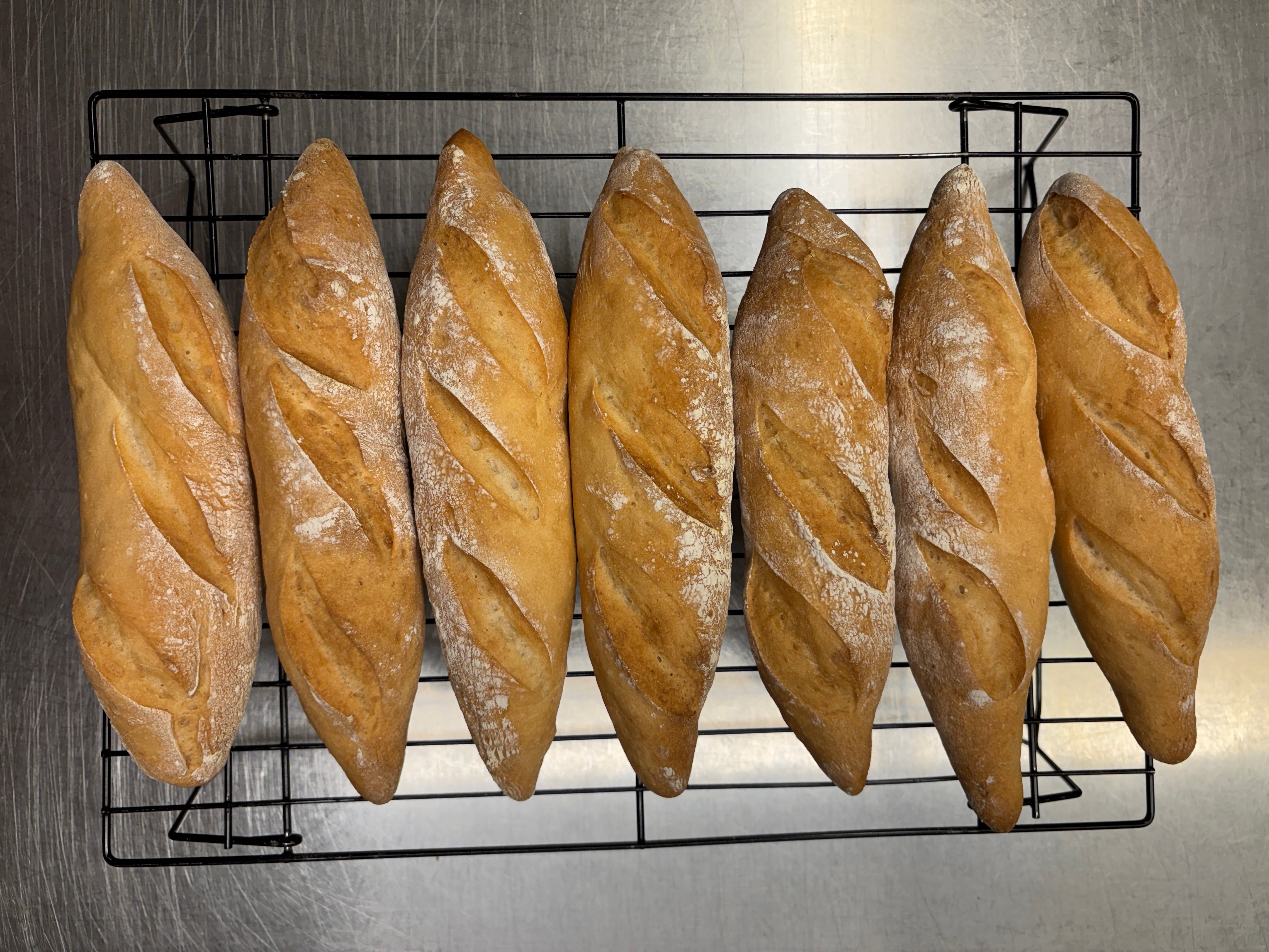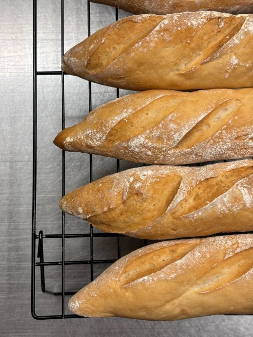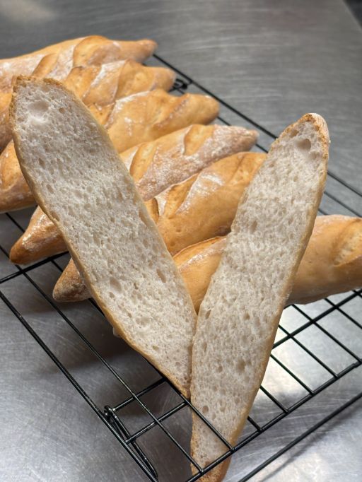 Instead of spraying the product with water, you can brush the surface of the mini baguette with seed oil or extra virgin olive oil for an even more intense browning.
