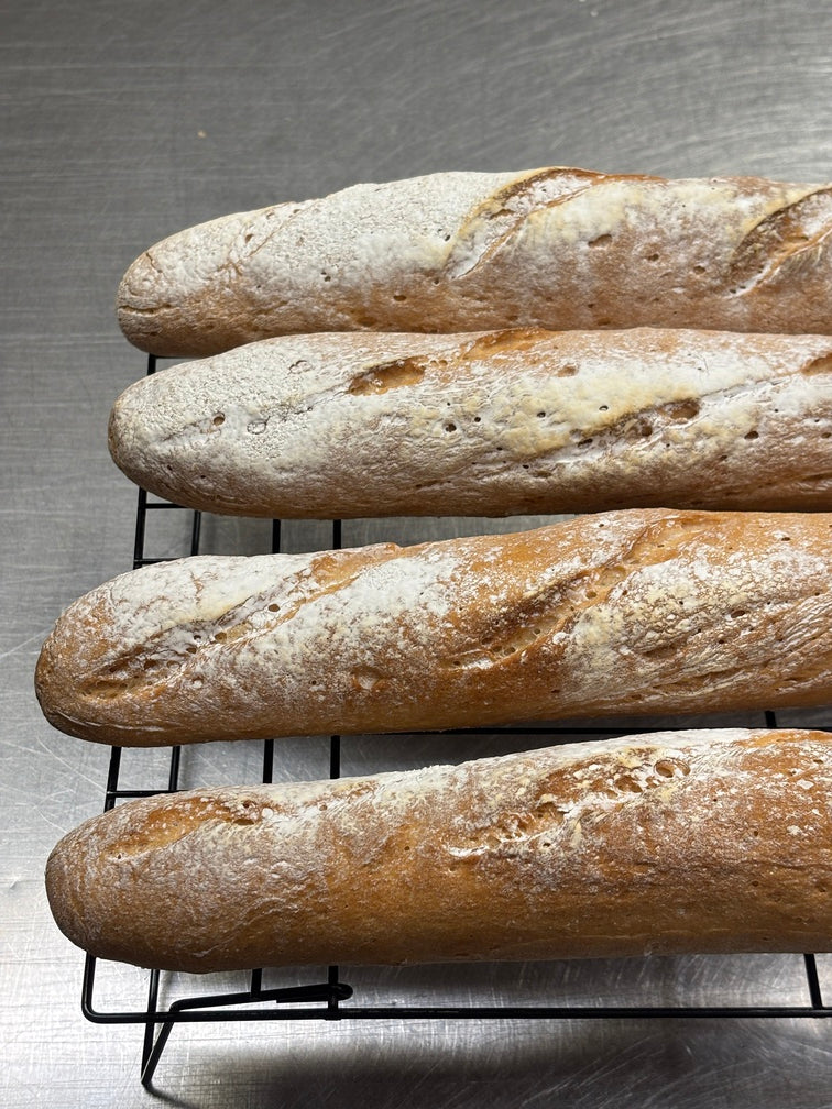 Invece di spruzzare il prodotto con acqua, è possibile ungere la superficie della baguette con olio di semi o evo, per una doratura ancora più intensa.