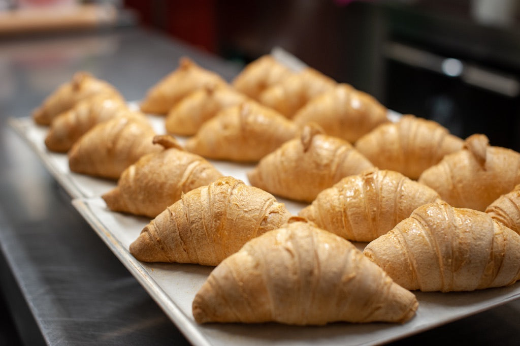 Preriscaldare il forno, togliere la teglia dal sacchetto e cuocere come indicato. Eventualmente spolverare la superficie del cornetto con zucchero a velo vanigliato per una doratura ancora più accentuata.