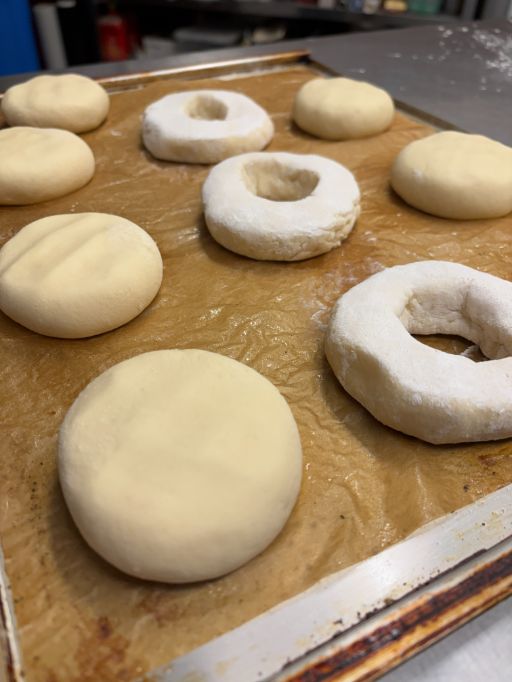 Usando i palmi delle mani formare delle sfere ben lisce e compatte e trasferirle su una teglia foderata di carta da forno. A piacere formare anche delle ciambelle con il buco.