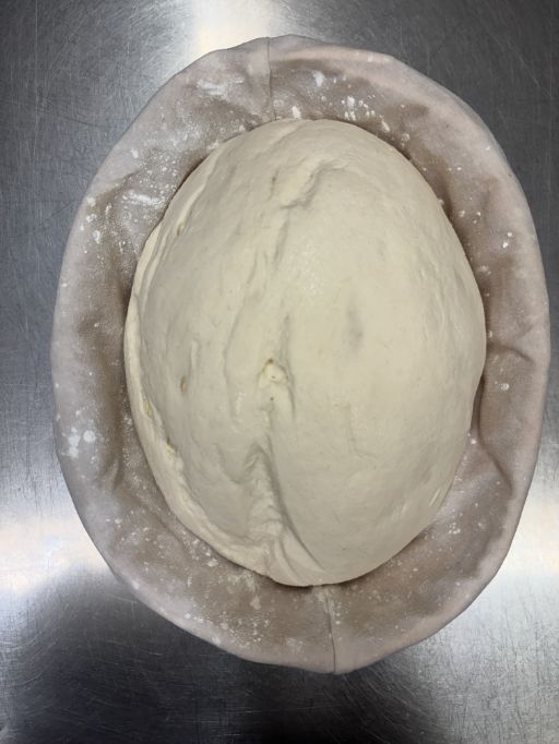 Trasferisci l'impasto sul tavolo di lavoro, impastalo brevemente per dargli la forma desiderata e mettilo nel cestino di lievitazione debitamente preparato (o in altro stampo o accessorio a scelta). Copri e fai lievitare.