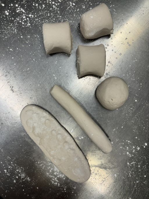 Suddividerlo in 6 pezzi e arrotolare ogni pezzo usando il palmo delle mani, fino ad ottenere 6 filoncini.